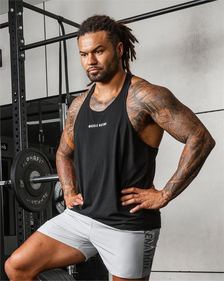– True to size- Armhole binds – Scoop neckline- Drop arm design for added flexibility- Muscle Nation logo on front chest- 98% Cotton, 2% Elastane Model: Jake – 183cm, wears Large Top & Medium Bottoms