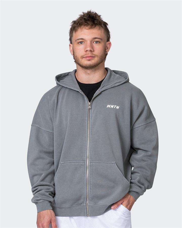 Muscle Nation Mens Vintage Oversized Zip Up Hoodie – Washed Dark Castor Grey – XL