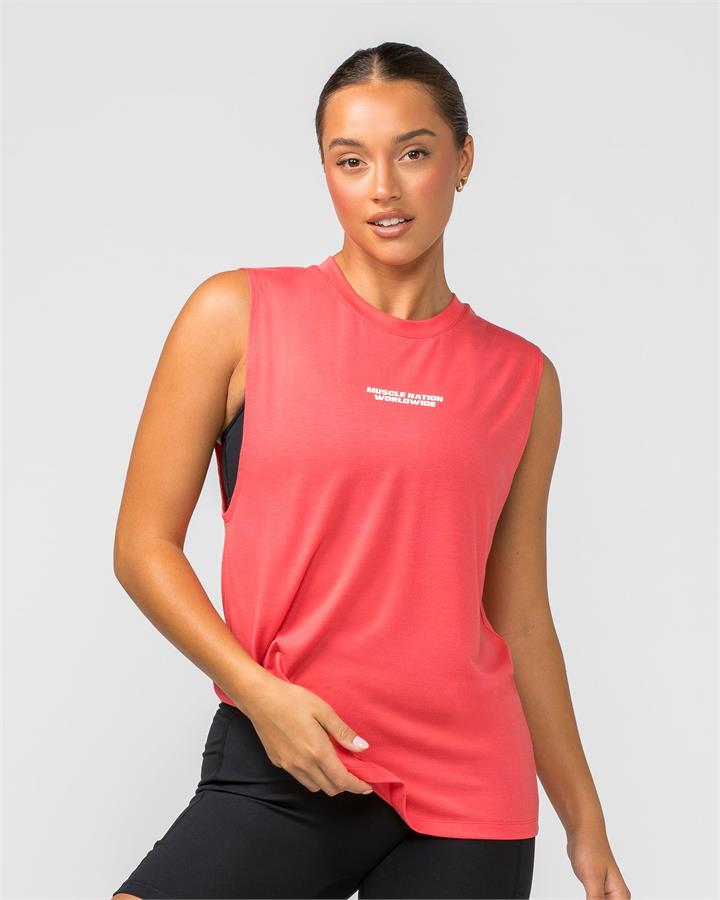 Muscle Nation Represent Drop Arm Tank – Peach Orange – XL