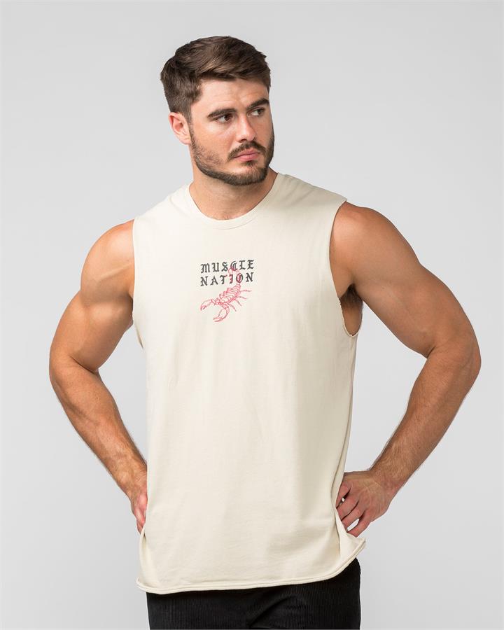Muscle Nation Scorpion Heavy Vintage Tank – Washed Cream – L