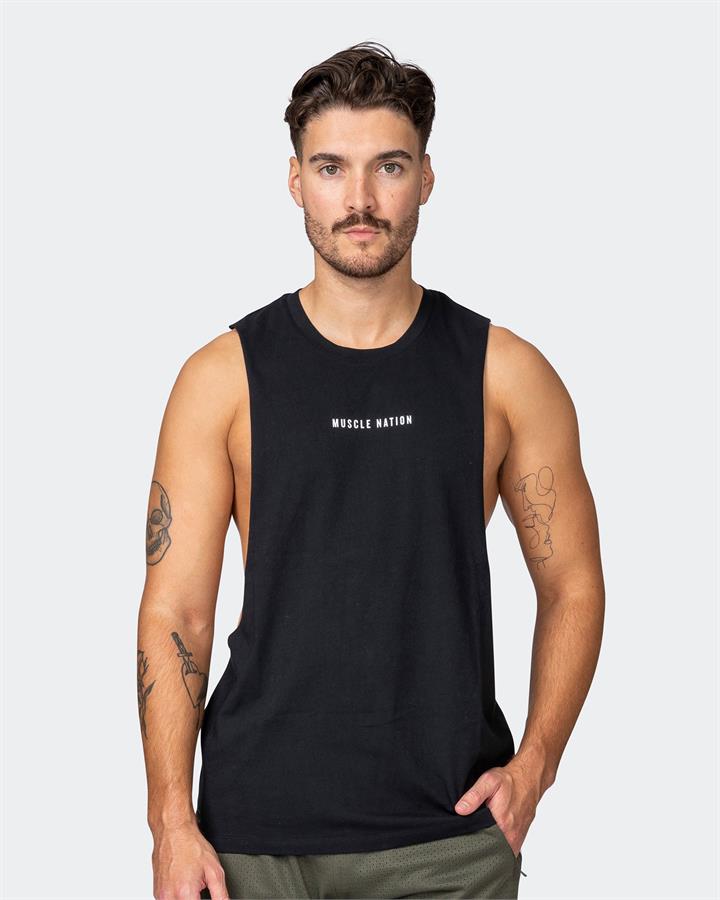 Muscle Nation Ultra Drop Arm Tank – Black – L