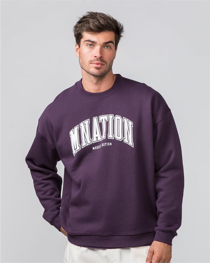 Muscle Nation Varsity Crew Pullover – Midnight Plum – L