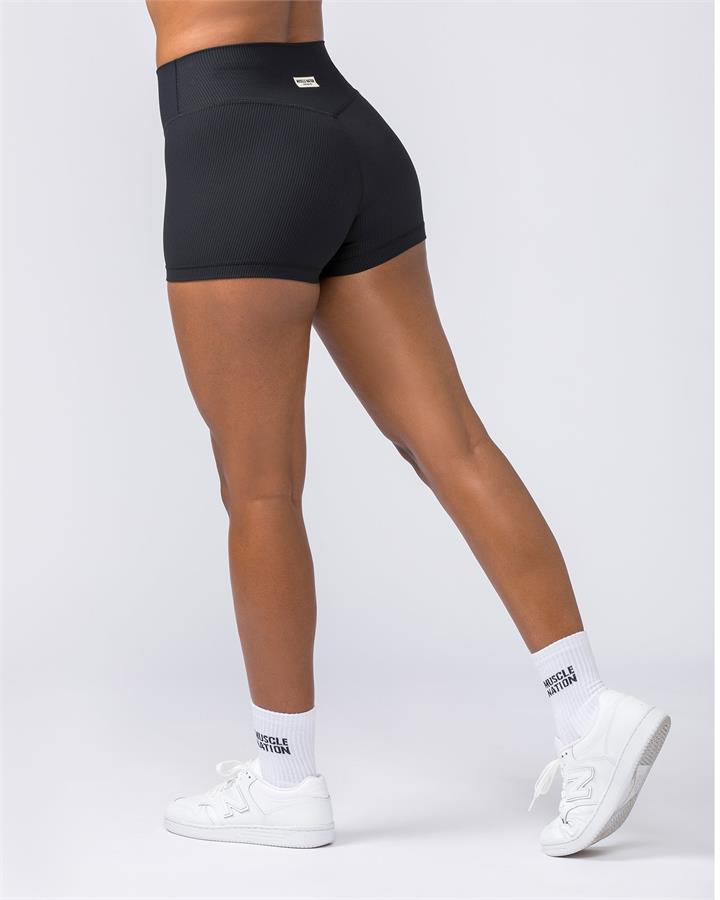 Muscle Nation Zero Rise Rib Booty Shorts – Black – L